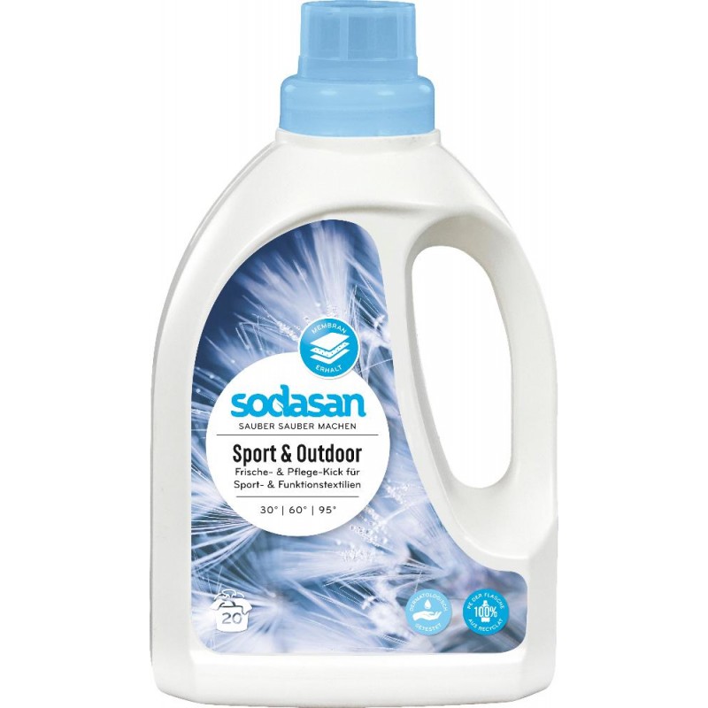 Sportbekleidung braucht eine andere Pflege als normale Bekleidung. Funktionsbekleidung besteht aus Hightech-Fasern, die die Feuchtigkeit nach außen transportieren können. Oft ist Funktionskleidung auch mit einer speziellen Imprägnierung oder mit einer Membran ausgestattet, die einer besonderen Pflege bedürfen. Deswegen gibt es spezielle Sportwaschmittel wie das Sodasan active Sportwaschmittel. Es pflegt Ihre Sportwäsche bei jedem Waschen.